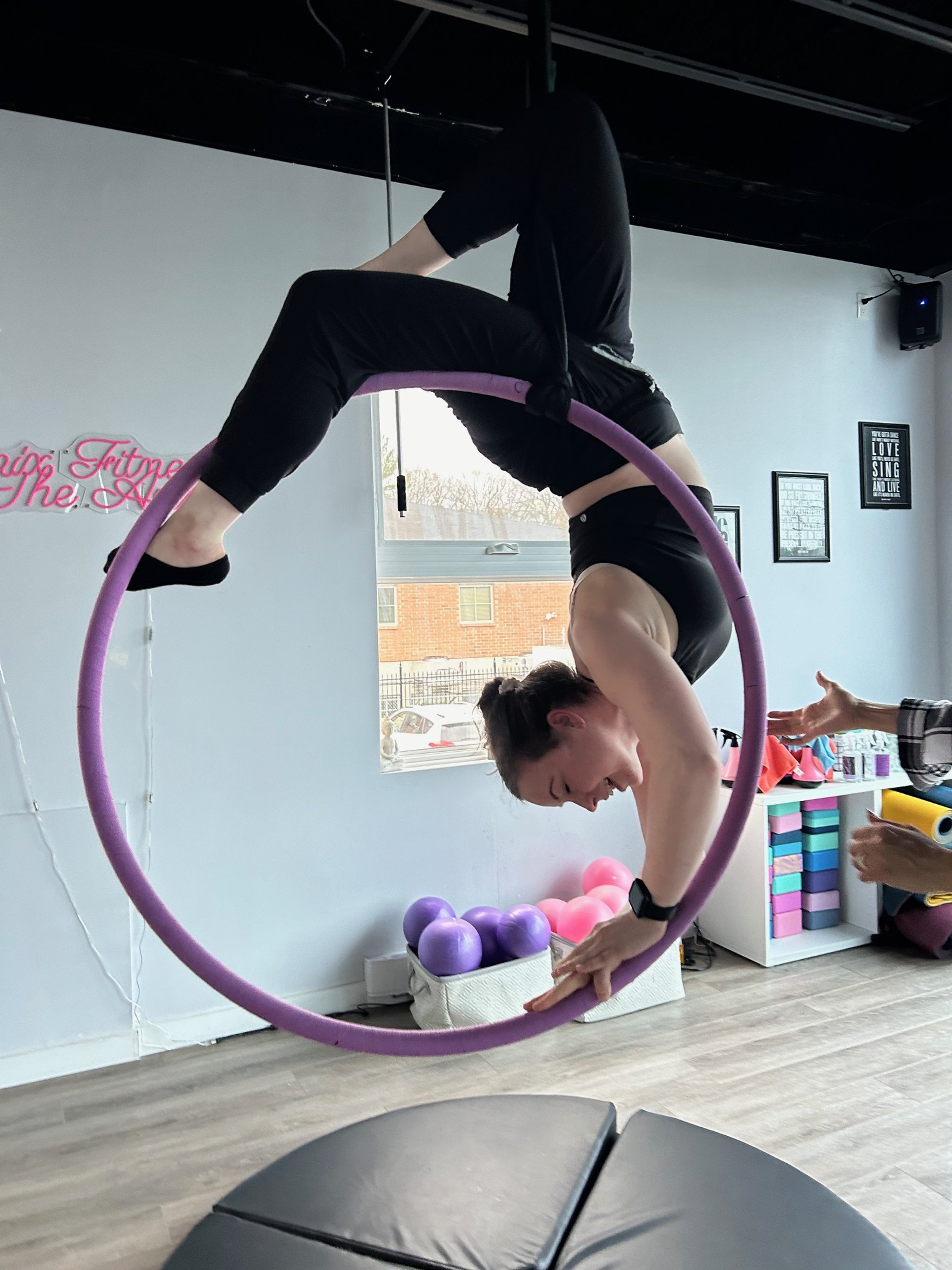 As a new mom, Mari feels it is more important than ever to teach the next generation of women that bodies of all backgrounds and all abilities are made to move, even in the air! Join Mari for Beginner Lyra and unleash your inner aerialist!